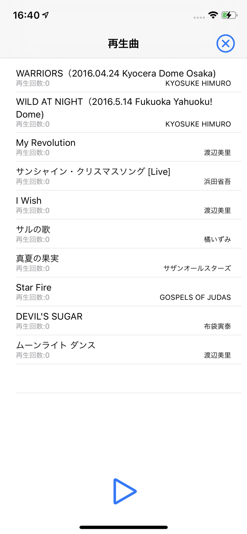 - オフ時は再生曲ささ画面に再生ボタンが表示されます。