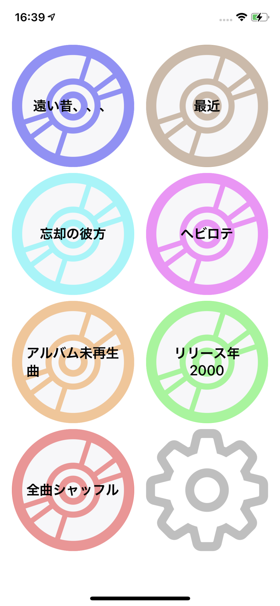 - ディスクアイコン:記載されている条件で曲を選択、再生します。