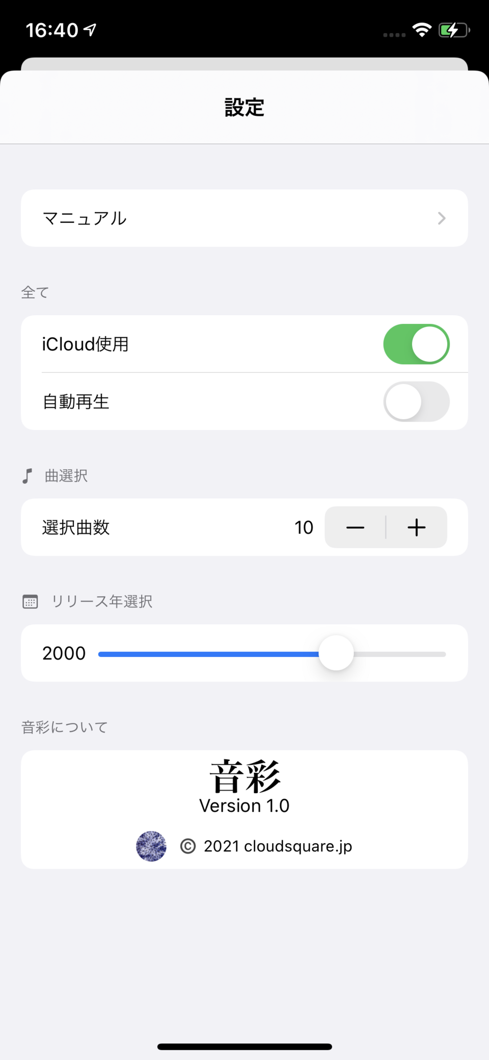 ミュージックライブラリ曲を色々な条件で選択し、再生するアプリです。