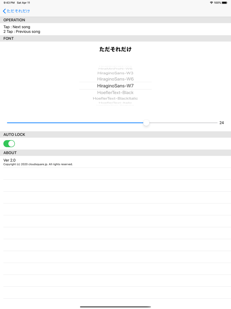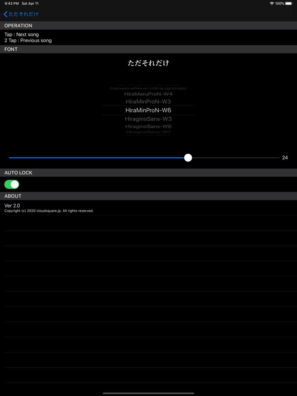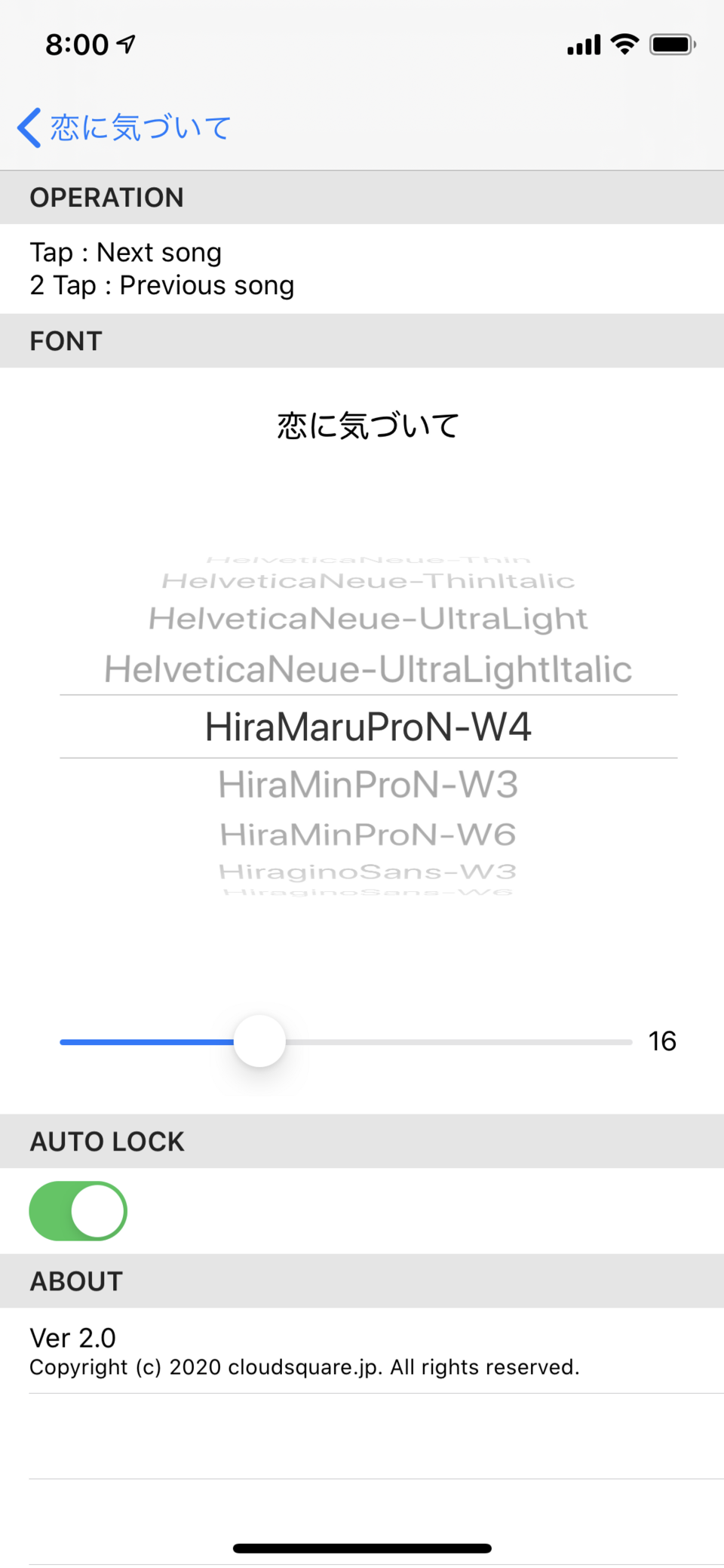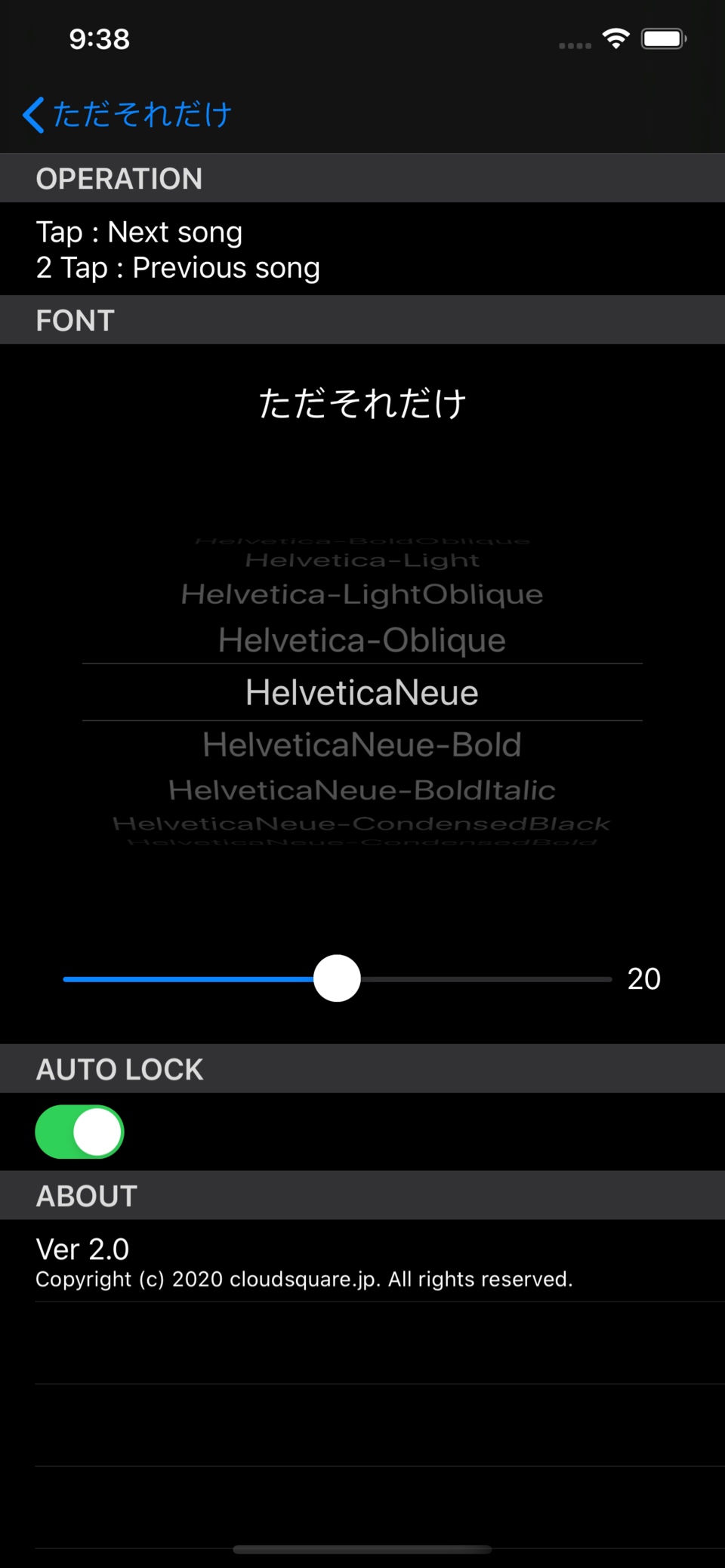フォント種類・大きさ、画面ロック有無を変更出来ます。
